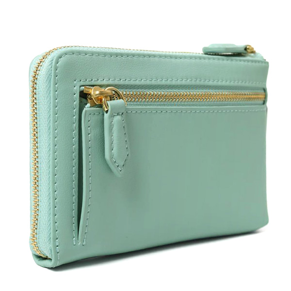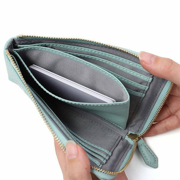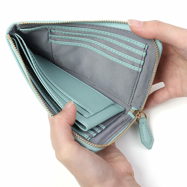 カードやお札がたっぷり収納できます。外のファスナーポケット、及び内部中央の仕切りケースは小銭入れとして使えます。