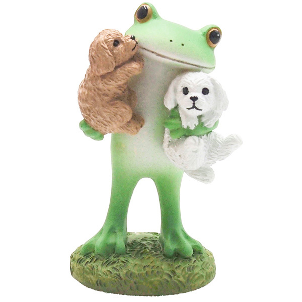 犬を2匹抱きかかえたカエル。