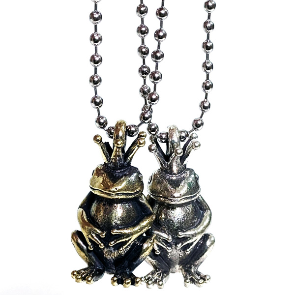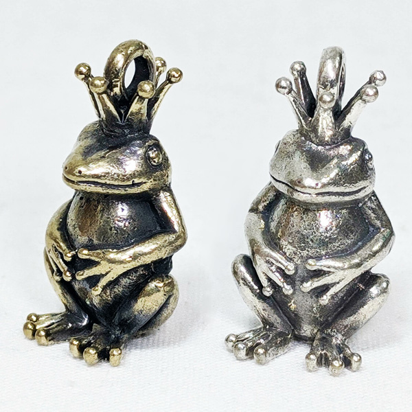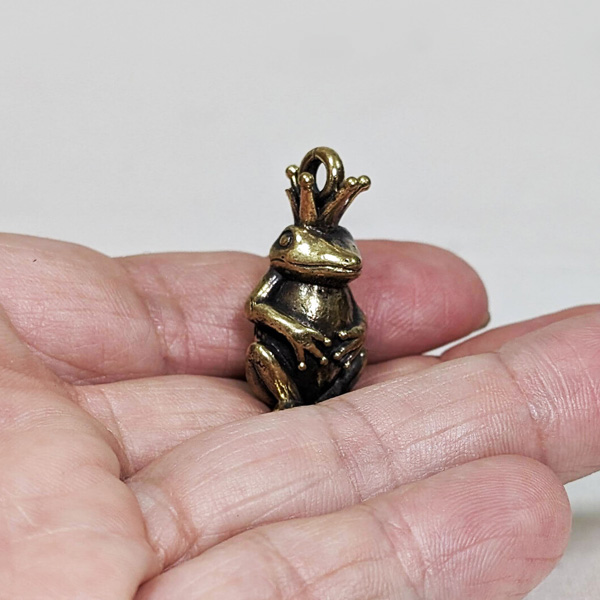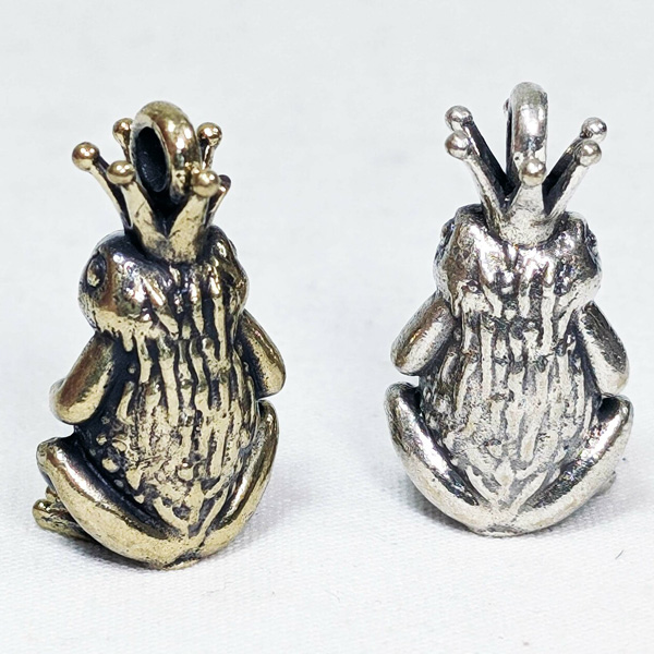 真鍮製カエル王子のメタルチャーム。ボールチェーン付きの王冠カエルです。ずしりと重いメタルカエルのキーチェーン。