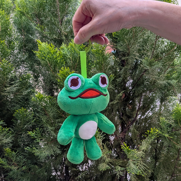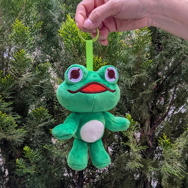 タケヤマノリヤさんデザインのカエルキャラ「ドンケリィ」のカラビナ付きマスコット。