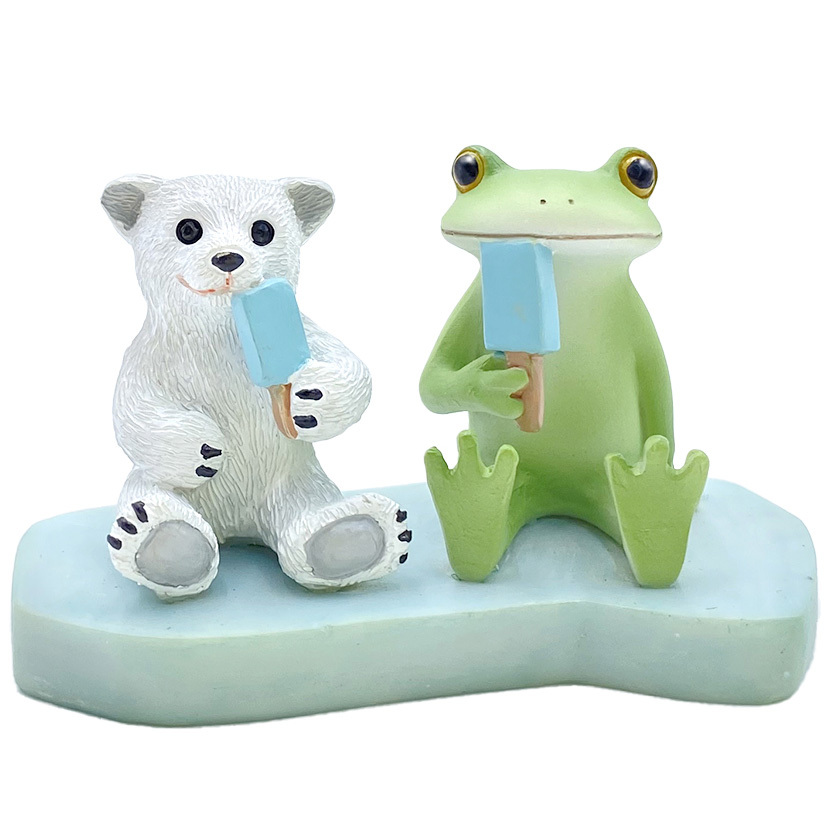 流氷の上で白熊と並んでアイスキャンディーを食べるカエル。
